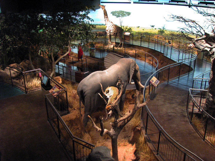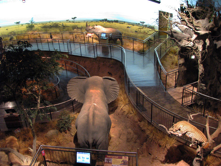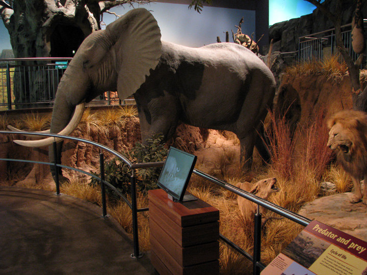 This vast and diverse African Savanna scene also includes informational computer kiosks, a computer game, 2 interactive animatronic Maasai, an animatronic crocodile, a push button bird sounds station, looping video player, 3D tv, and flapping butterflies.
