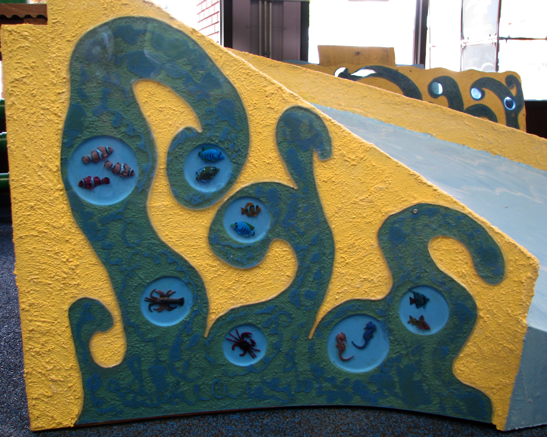 Includes: tactile surfaces, ball ramp, light up plinko game, sound effects pipes, see through floor, light up canopy, submarine control panel, hidden sea creatures.